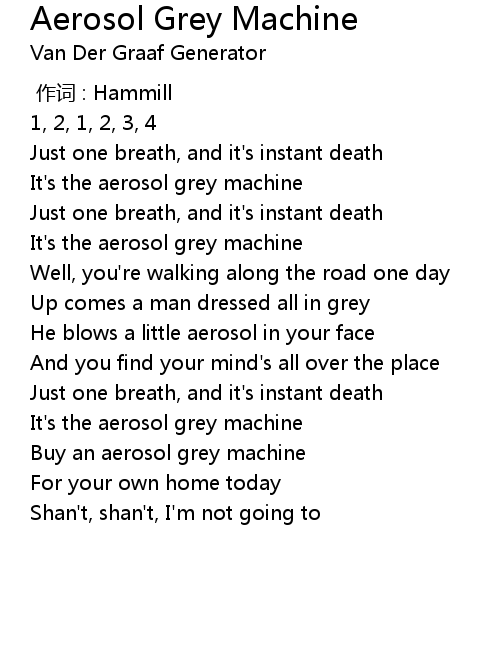 | [00:09.50] | It' s the aerosol grey machine |