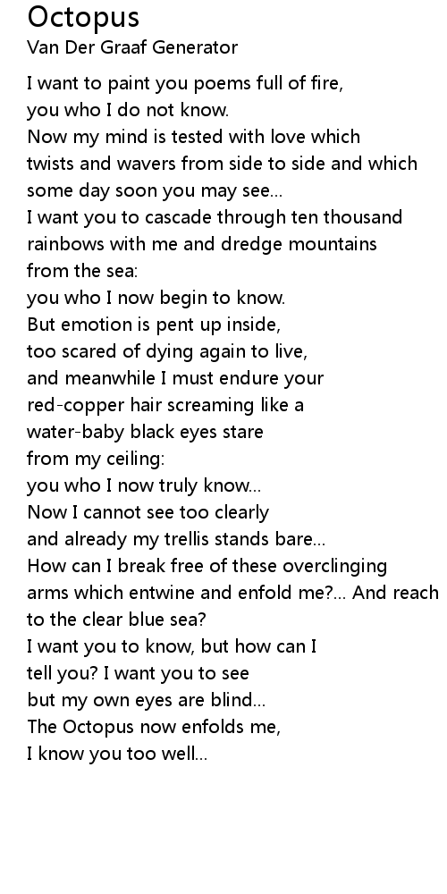 The Octopus now enfolds me, |