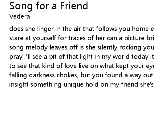 does she linger in the air that follows you home each day do you ever stop and stare at yourself for traces of her can a picture bring some comfort where a song melody leaves off is she silently rocking you to sleep 'cause i hope and i pray i'll see a bit of that light in my world today it would be an injustice not to see that kind of love live on what kept your eyes up kept your world from falling darkness chokes, but you found a way out may i say your words are insight something unique hold on my friend she's rocking you out of here |
