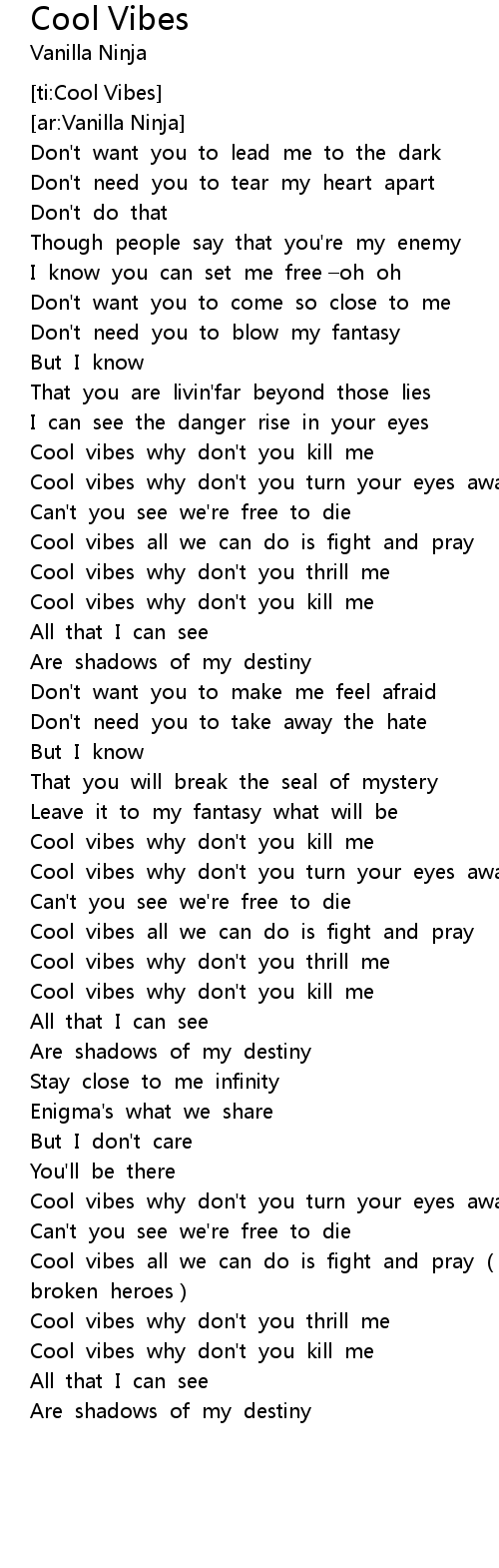 | [02:48.490] | Cool vibes why don't you kill me |
