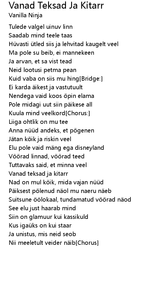 | Song | Vanad Teksad Ja Kitarr |