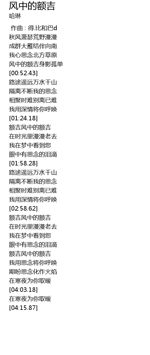 | [03:02.57] | 额吉风中的额吉 |