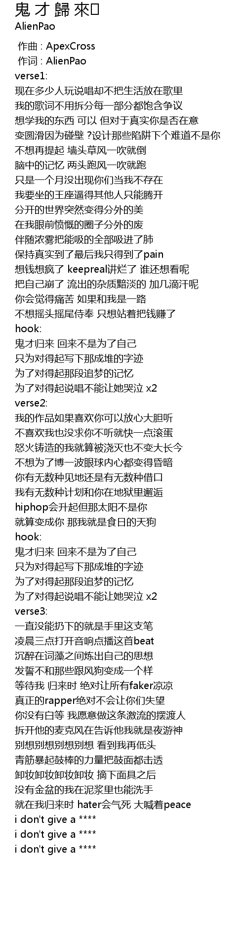 | [00:01.000] | 作词 : AlienPao |