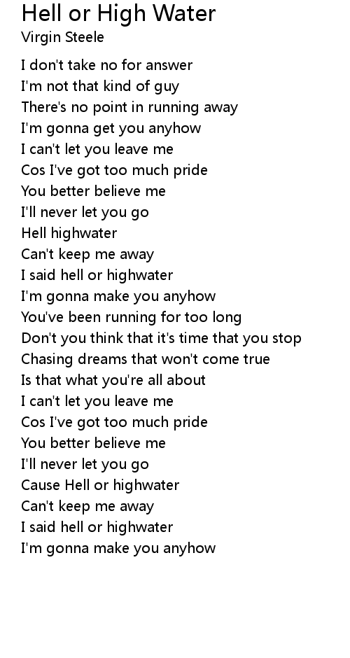 I said hell or highwater |