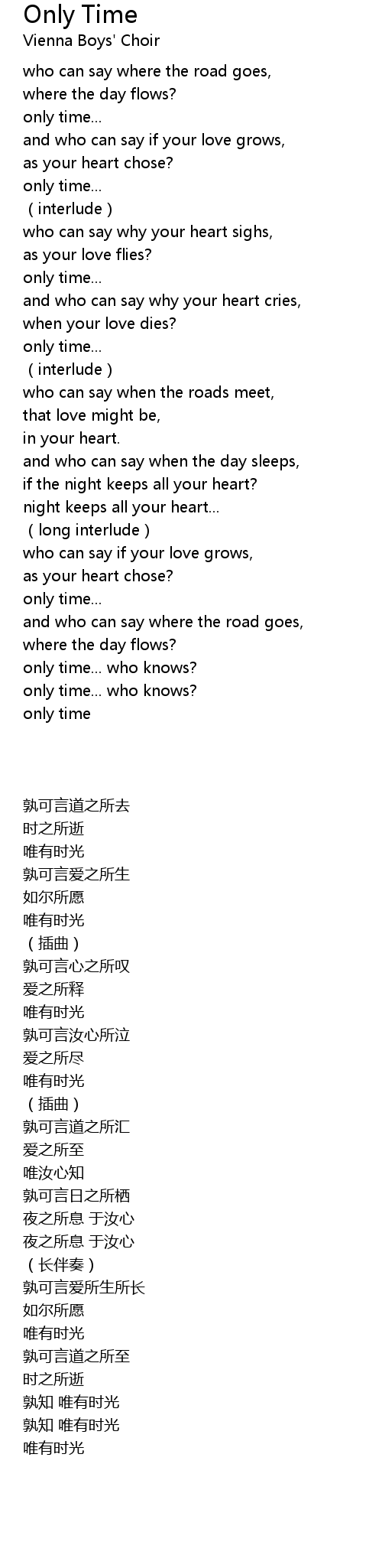 | Song | Only Time |