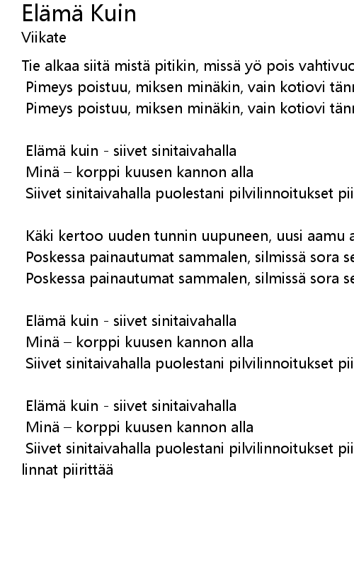 | Song | Elämä Kuin |