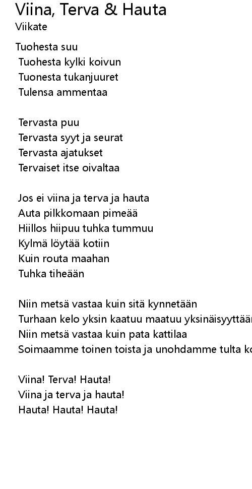 | Song | Viina, Terva & Hauta |