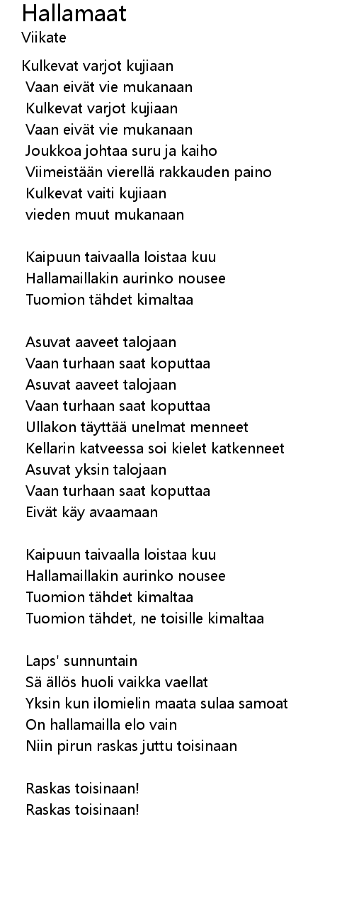 | Tuomion tähdet, ne toisille kimaltaa | |