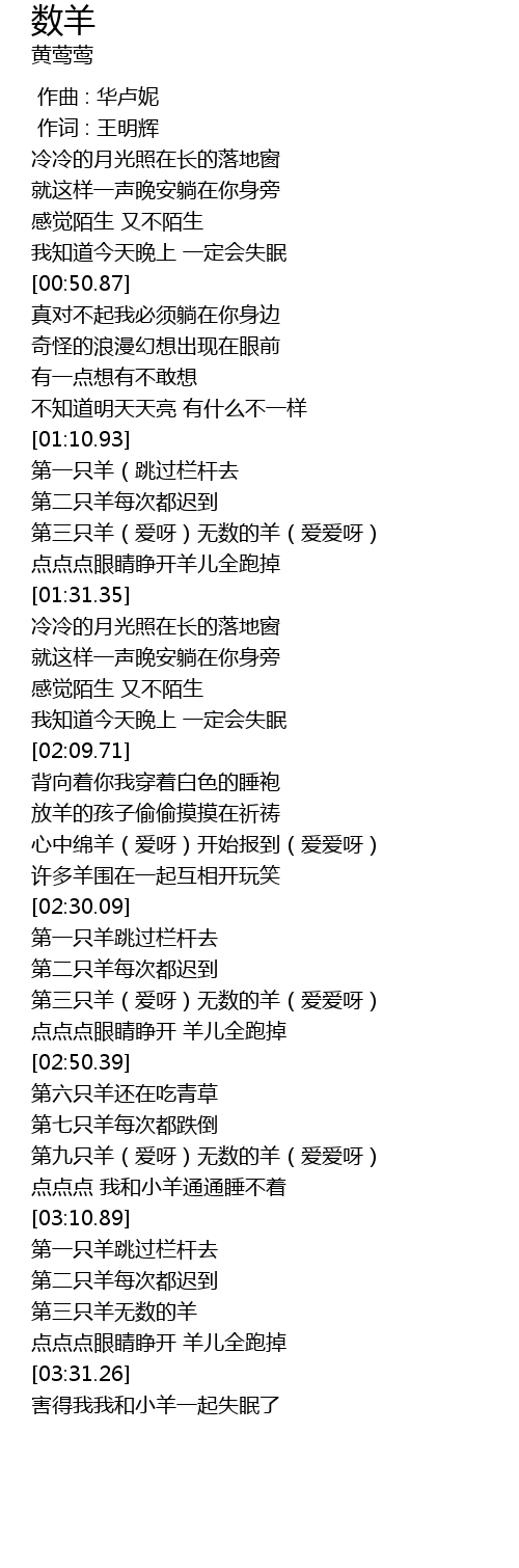 | [02:41.60] | 第三只羊(爱呀)无数的羊(爱爱呀) |