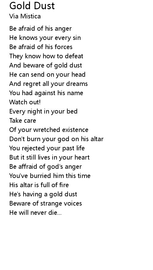And beware of gold dust |