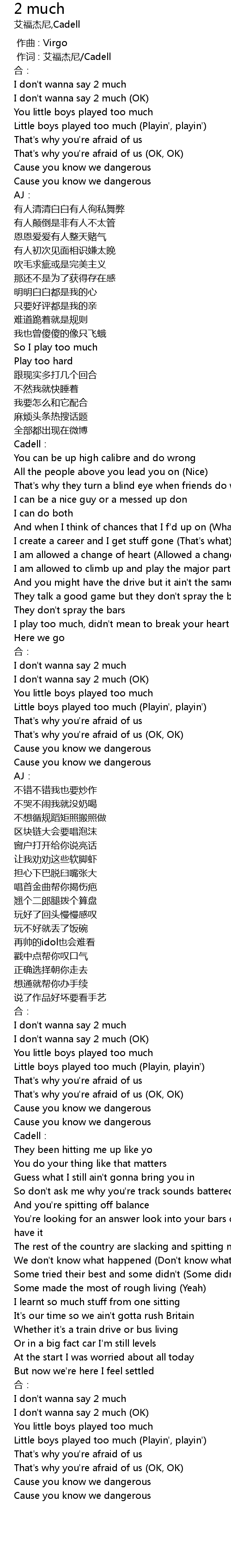 | [03:00.00] | I don't wanna say 2 much (OK) |