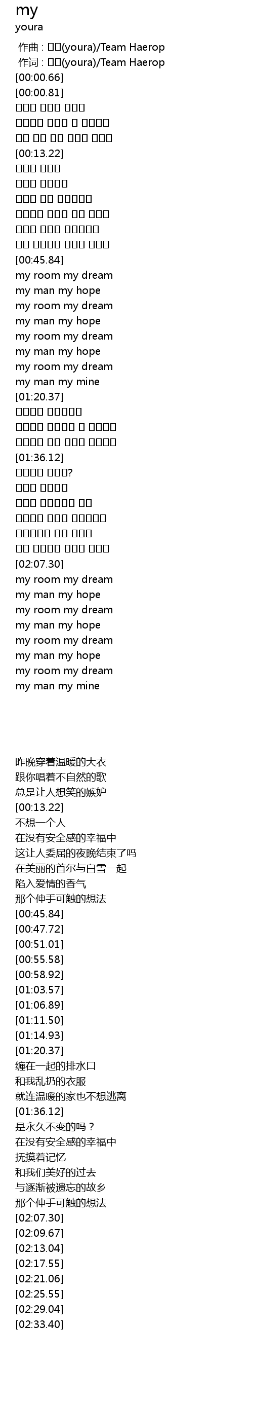 | [00:00.022] | 作词 : 유라(youra)/Team Haerop |