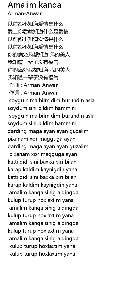 | [00:01.000] | 作词 : Arman-Anwar |