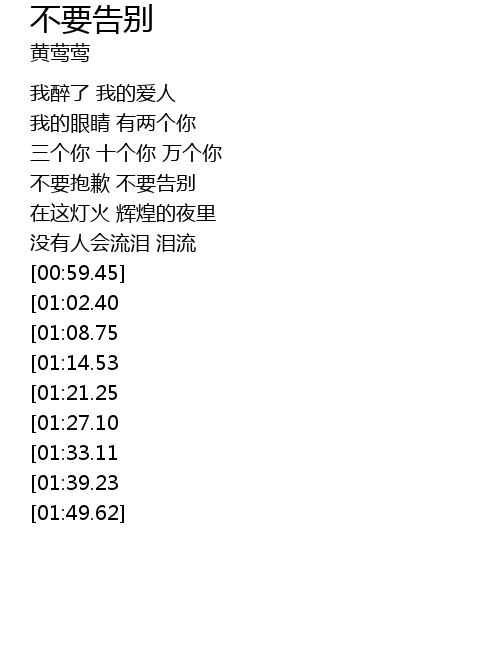 | [02:41.68][01:27.10] | 不要抱歉 不要告别 |