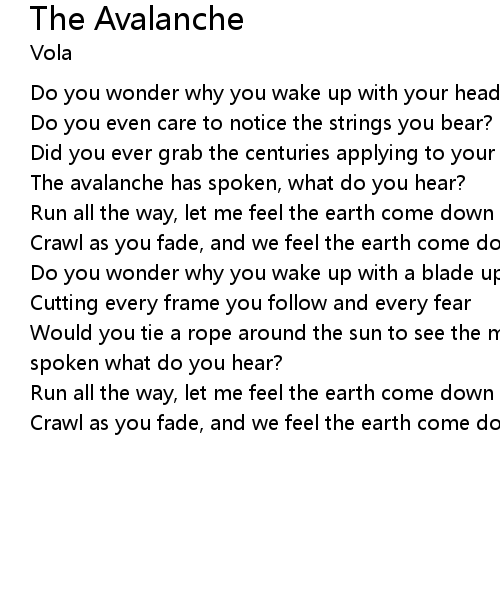 Would you tie a rope around the sun to see the march begin? The avalanche has spoken what do you hear? |