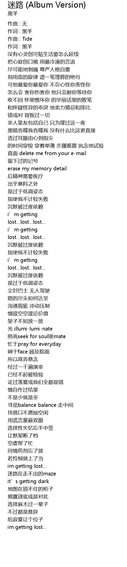 | 作词 : 黑羊 | |