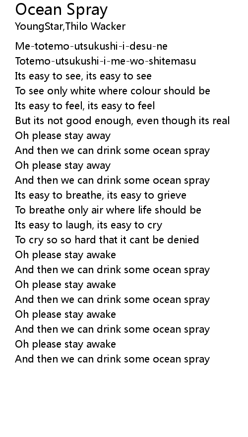 And then we can drink some ocean spray |