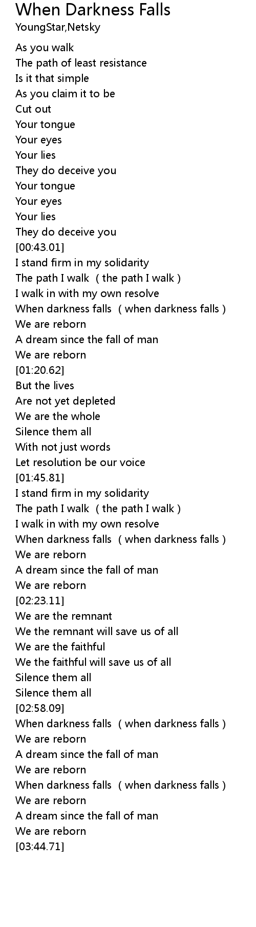 | [00:59.90] | When darkness falls (when darkness falls) |