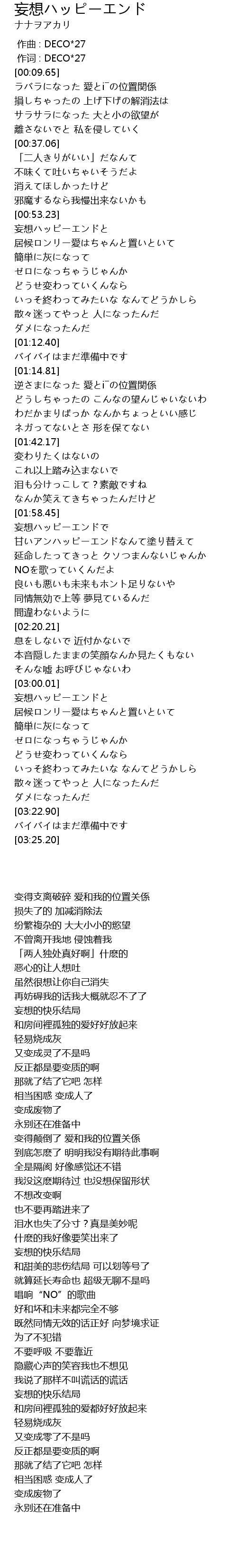 | [03:03.71] | 妄想ハッピーエンドと |
