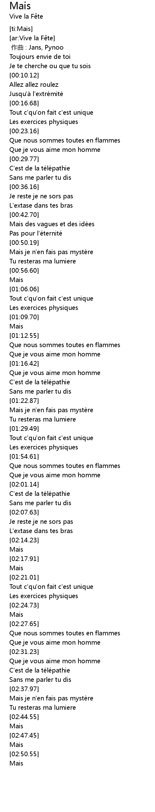 | [00:52.57] | Mais je n'en fais pas mystère |