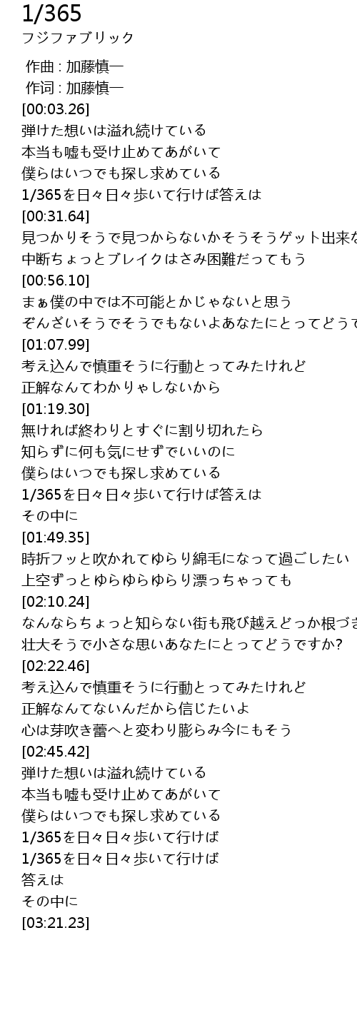 | [01:38.9] | 1/365を日々日々歩いて行けば答えは |