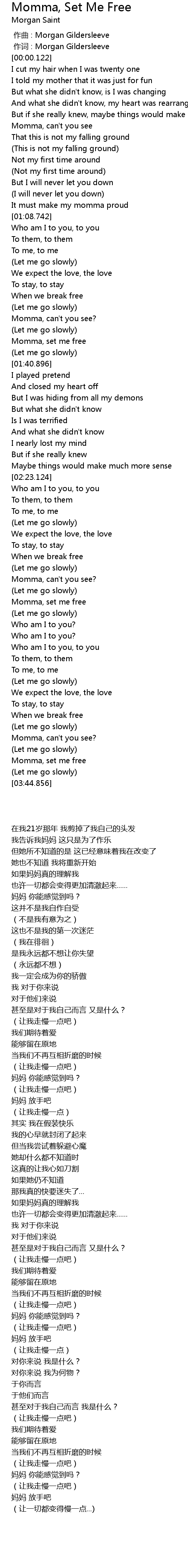 | [01:33.994] | Momma, set me free |