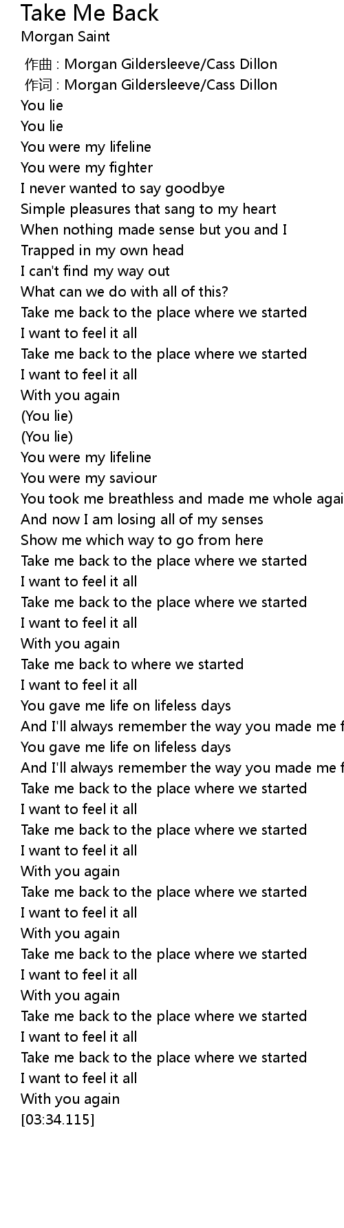 | [02:41.843] | Take me back to the place where we started |