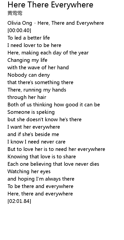 | [01:50.37] | Here, there and everywhere |