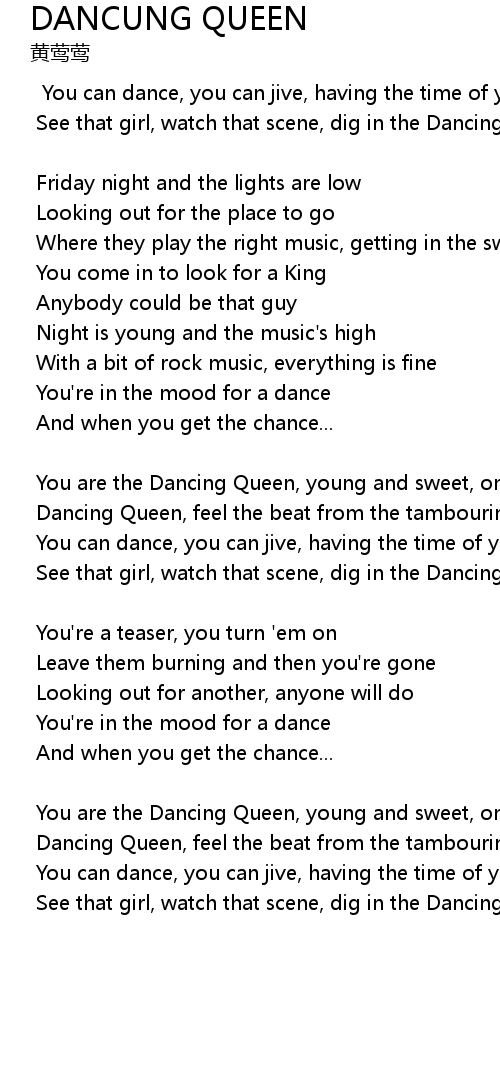 | You are the Dancing Queen, young and sweet, only seventeen | |