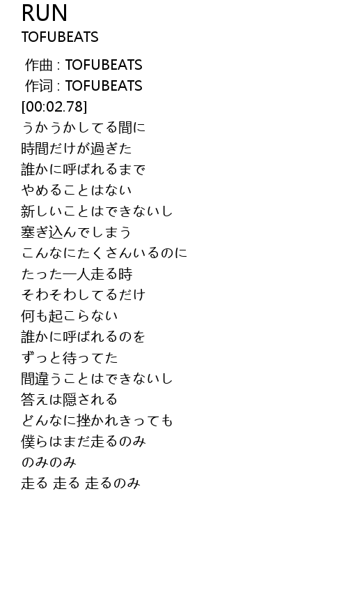 作词 : TOFUBEATS |