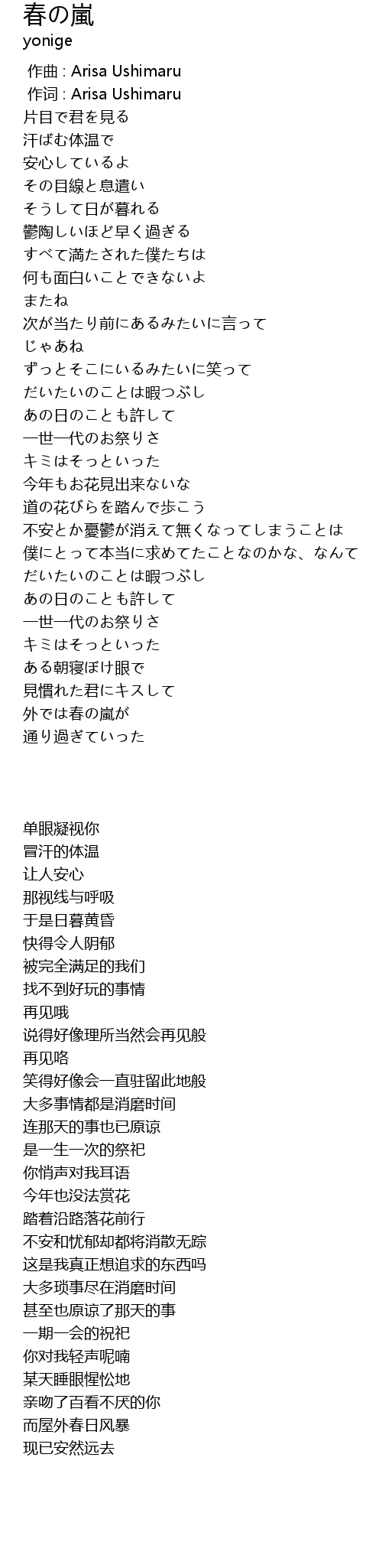 | [00:01.000] | zuò cí : Arisa Ushimaru |