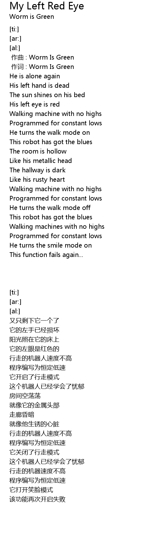 | [00:00.00] | zuò qǔ : Worm Is Green |