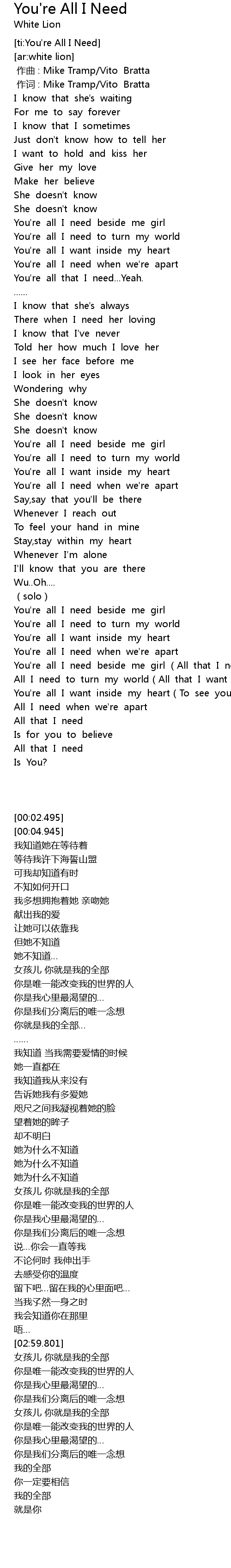 | [03:38.919] | You' re all I need beside me girl All that I need |