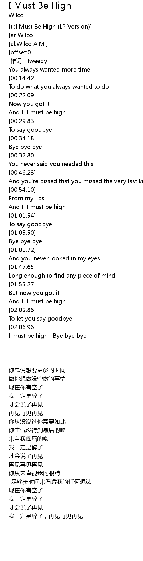| [00:47.87] | And you're pissed that you missed the very last kiss |