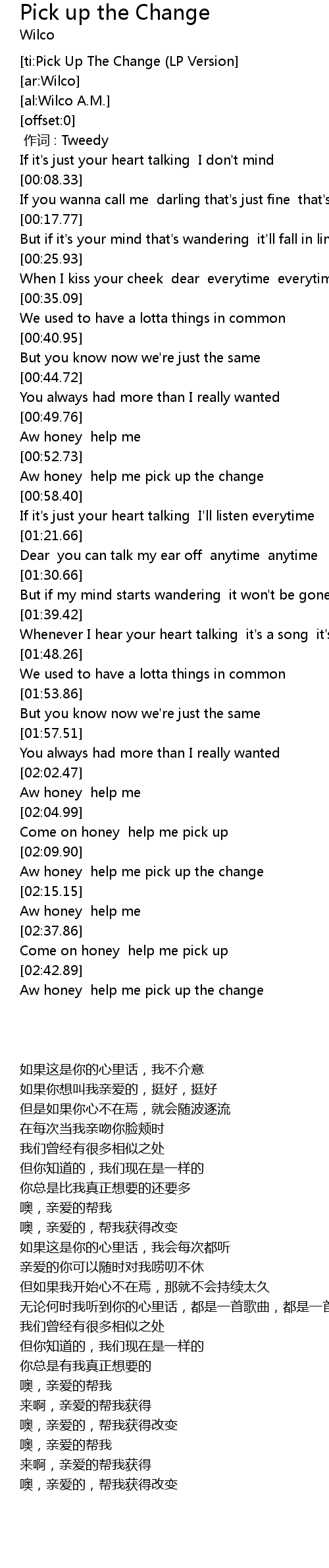 | [00:00.00] | 作词 : Tweedy |