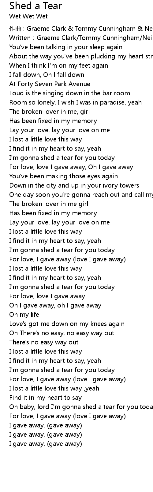 | Oh baby, lord I'm gonna shed a tear for you today | |