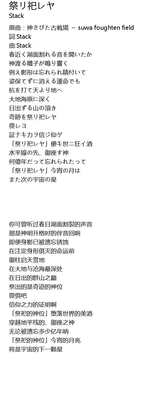 | Song | 祭リ祀レヤ |