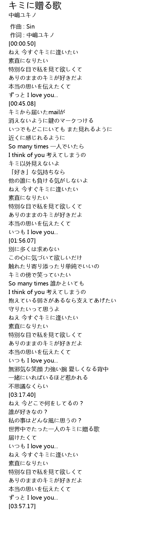 | [03:29.01] | 世界中でたった一人のキミに贈る歌 |