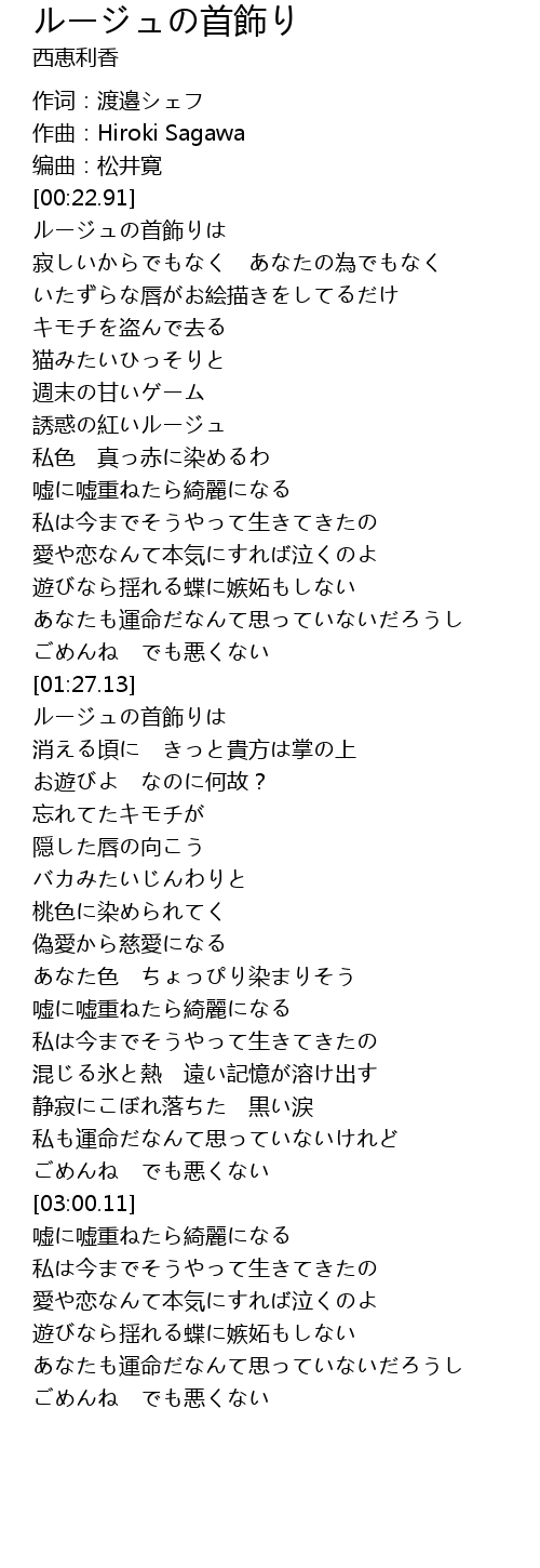 | [00:22.92] | ルージュの首飾りは |
