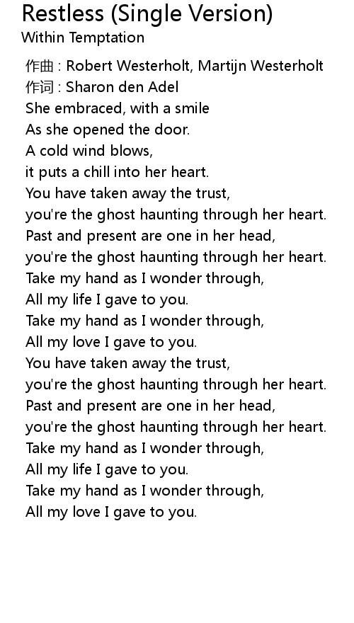 | [00:00.00] | 作曲 : Robert Westerholt, Martijn Westerholt |