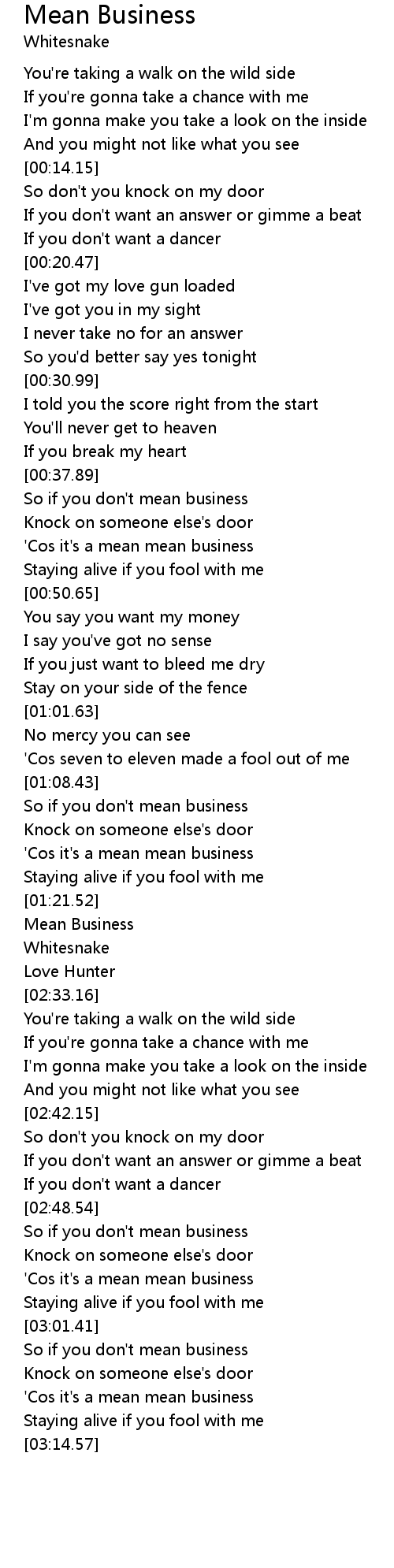 'Cos it's a mean mean business |