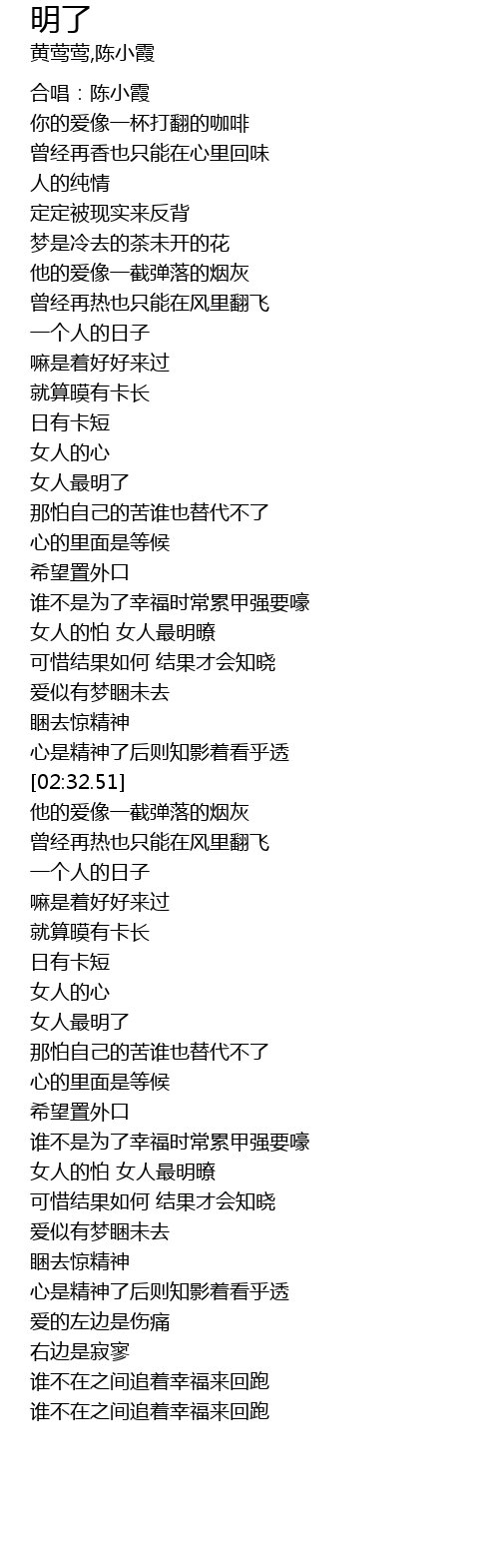 | [03:23.70] | nǚ rén zuì míng liǎo |