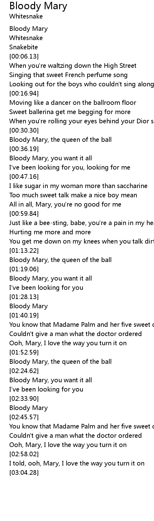 Bloody Mary, you want it all |