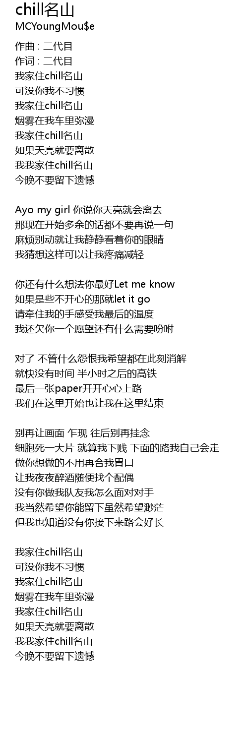 | Song | chill名山 |