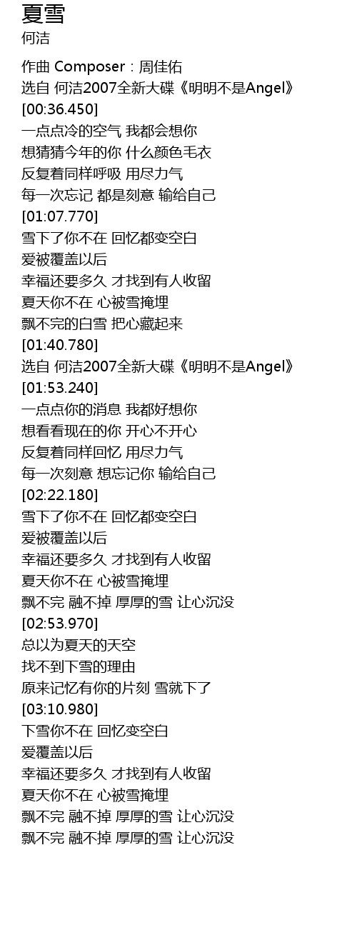 | [01:47.730] | 选自 何洁2007全新大碟《明明不是Angel》 |