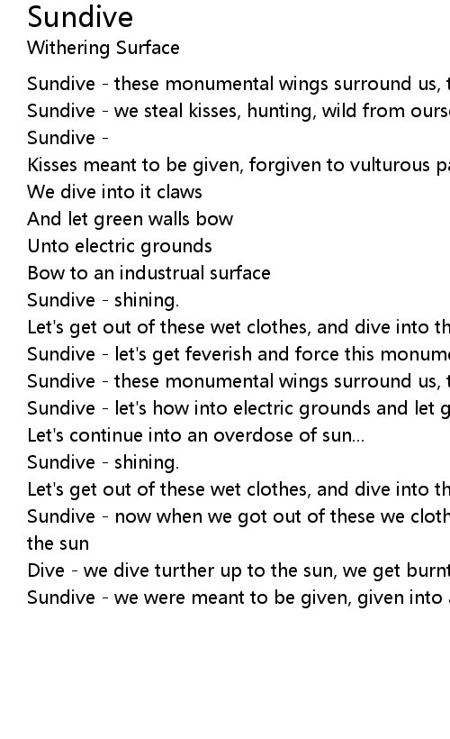 Sundive - now when we got out of these we clothes we dive, we dive, we dive into the sun |