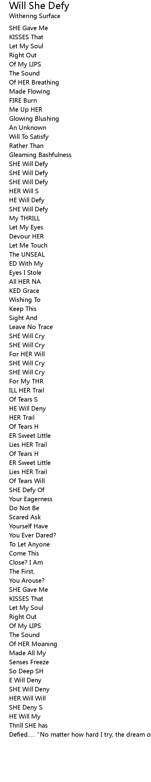 | Defied..... "No matter how hard I try, the dream of us never seems to fade" |