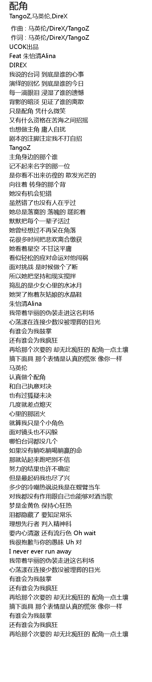 | [00:01.000] | 作词 : 马英伦/DireX/TangoZ |