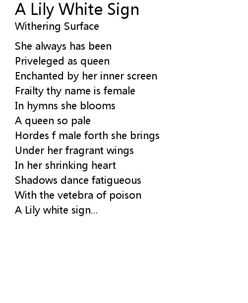 | Song | A Lily White Sign |
