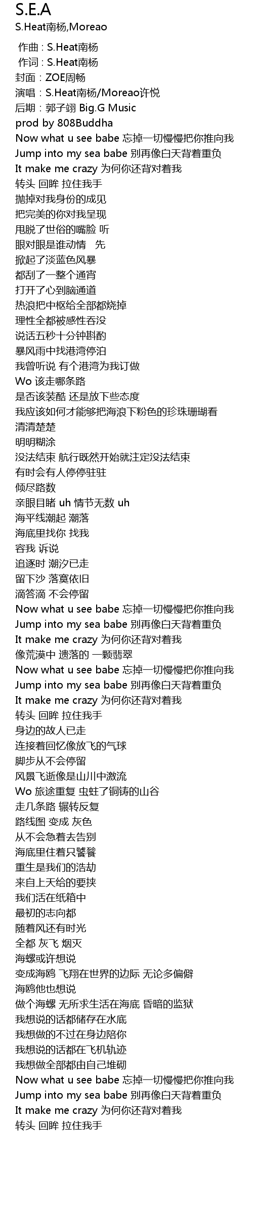 | [00:06.09] | 演唱:S.Heat南杨/Moreao许悦 |